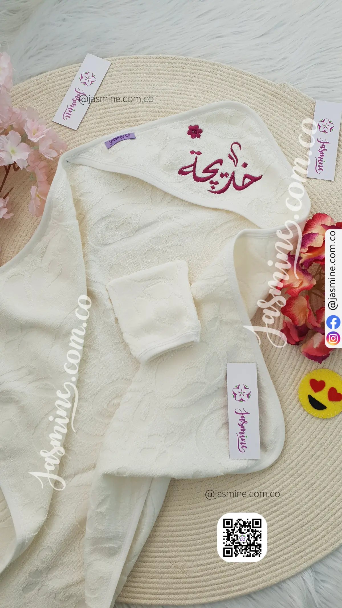 بشكير وليفة قطن للاستحمام تطريز باسم خديجة