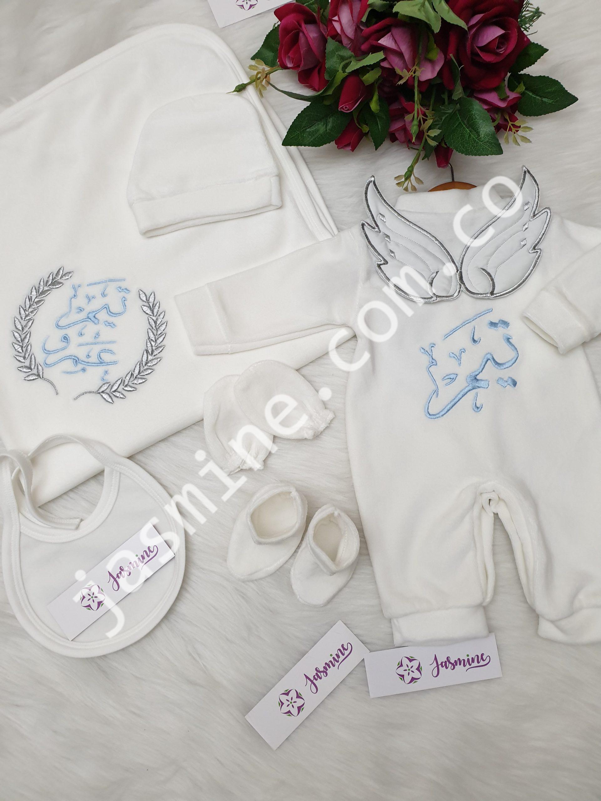 طقم سبوع وولادة تطريز باسم تيم عمرو