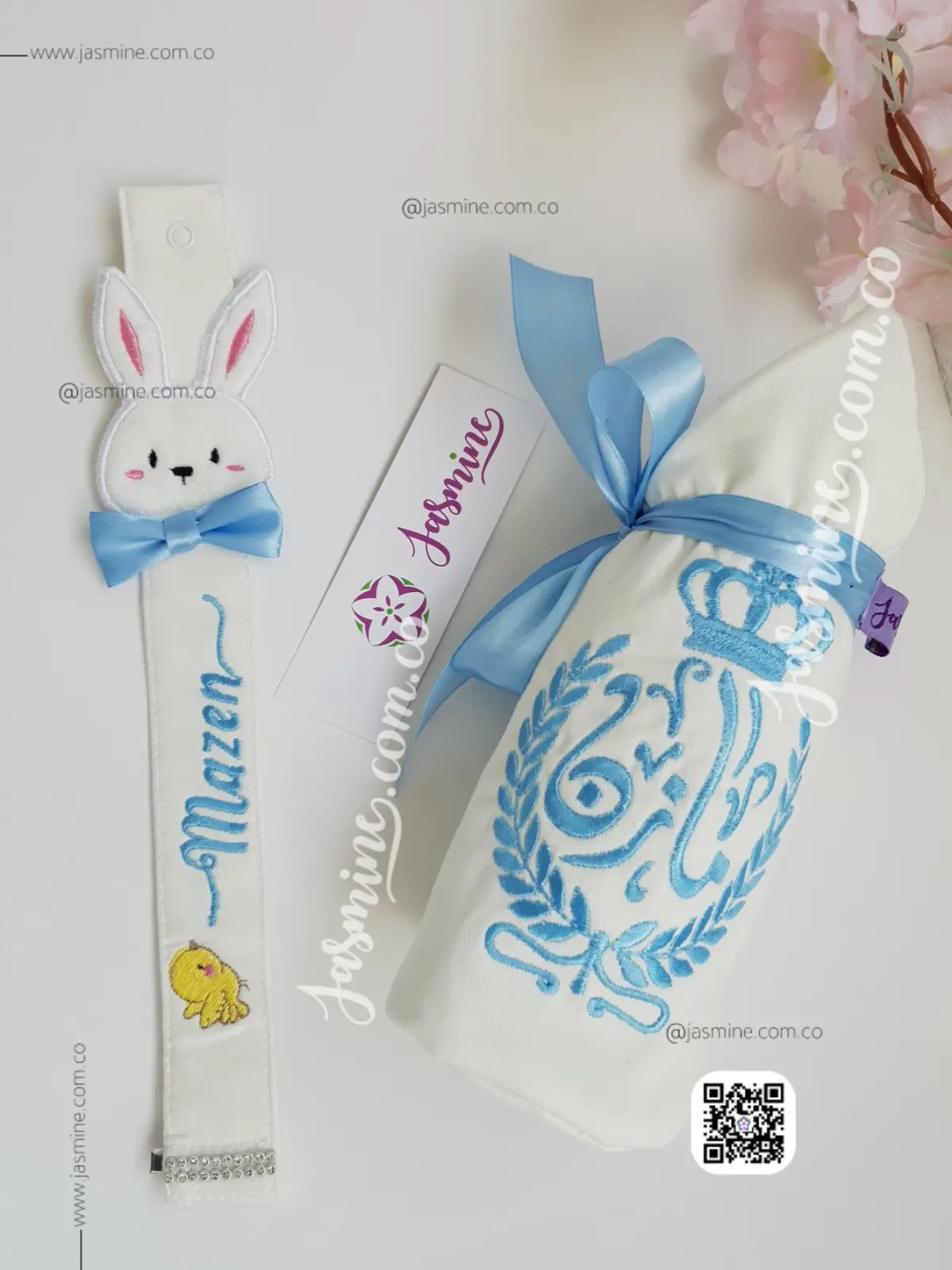 جراب بيبرونة اسم مازن مع شريط لهاية مطرز