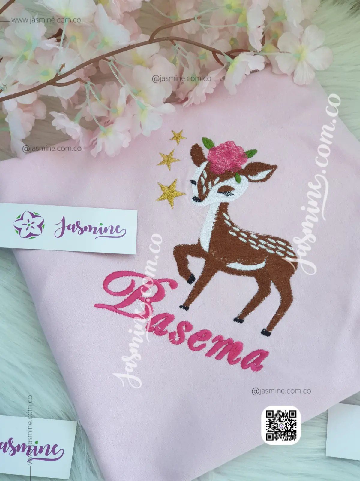 كوفرتة مولود قطن بيور تطريز تصميم غزال لطيف