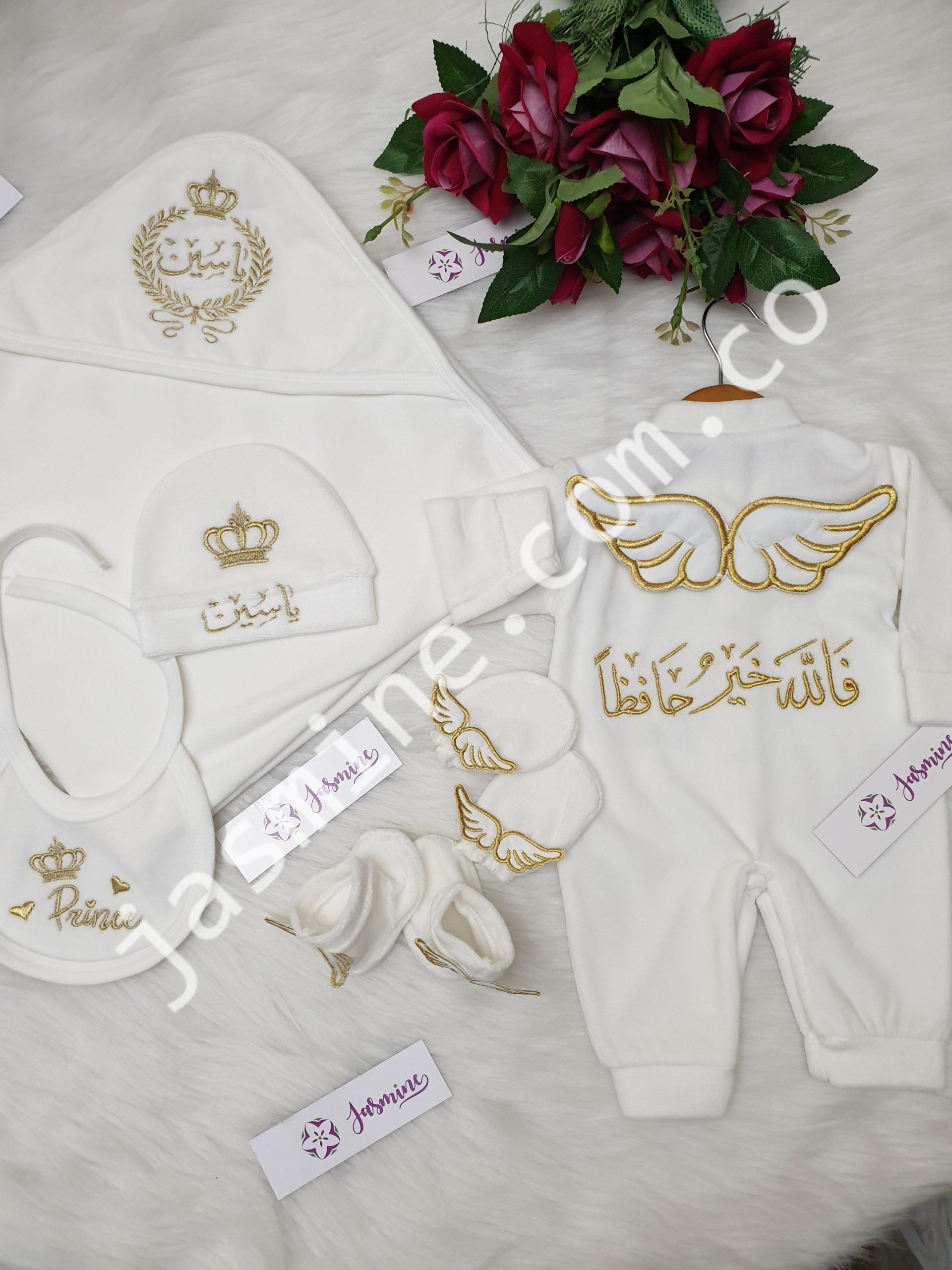 طقم سبوع وولادة تطريز باسم ياسين